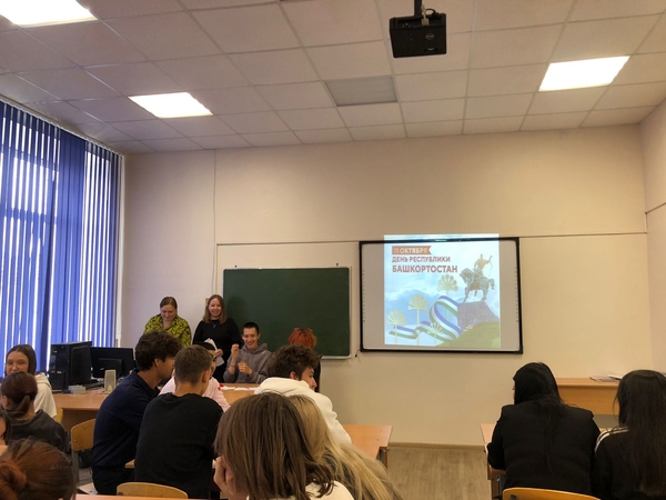 10 октября преподаватели Исхакова Э.Ф. и Ситдикова А.З. провели внеклассное мероприятие, посвящённое Дню Республики Башкортостан. Студенты групп 1ДИВ и 1ФКБ окунулись в историю, культуру и символы родной республики.